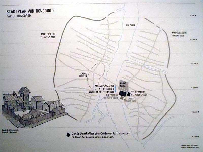 Zweites Kapitel. Zustand Nowgorods bis zur Begründung des gothländischen und des deutschen Hofs in dieser Stadt. S. 16 - 20. Wichtigkeit der nationalen Verschmelzung des slavischen Nowgorod mit den Warägern. S. 17. Nowgorods unabhängige Stellung zu dem rurikschen Fürstenhause, S. 18. 19., durch die vom Großfürsten Jaroslaw verliehenen Berechtigungen befestigt. S. 20.