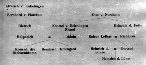 Die nachfolgende genealogische Übersicht von Werner Schubart (Sachsenblume und Sachsenkaiser in der Klosterkirche zu Hecklingen. Heimat-Kalender für die Alt-Bernburger Lande 9.1934, S. 111-120) zeigt die Nachkommen Otto's von Nordheim auf: