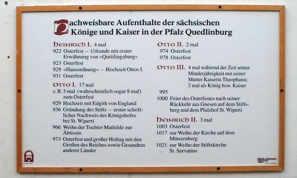 Quelle: C. F. Ranke, F. Kugler: Beschreibung und Geschichte der Schloßkirche zu Quedlinburg und der in ihr vorhandenen Alterthümer. nebst Nachrichten über die St. Wipertikirche bei Quedlinburg, die Kirche zu Kloster Gröningen, ... S. 95 bis 99. Berlin 1838. Verlag George Gropius