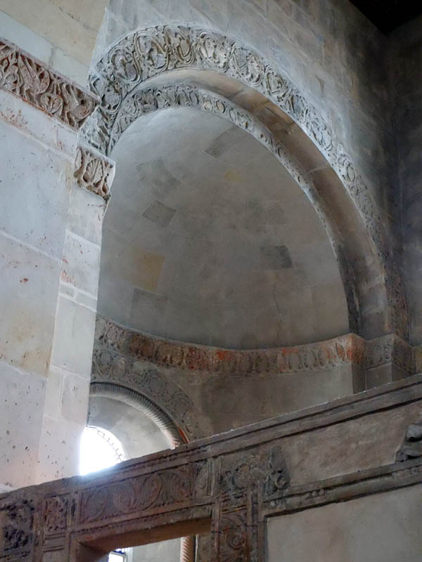*) Diese Einrichtung, - halbrunde Nischen, von Säulen getragen,- die sich zuweilen bei Kirchen der späteren Zeit des byzantinischen Styles vorfindet, ist gleichwohl kein Gegenbeweis gegen das angenommene hohe Alter der Gruftkirche, da sich ganz Aehnliches bereits an der Sophienkirche zu Constantinopel, an S. Vitale zu Ravenna (vollendet im J. 547) u. a. O. vorfindet.