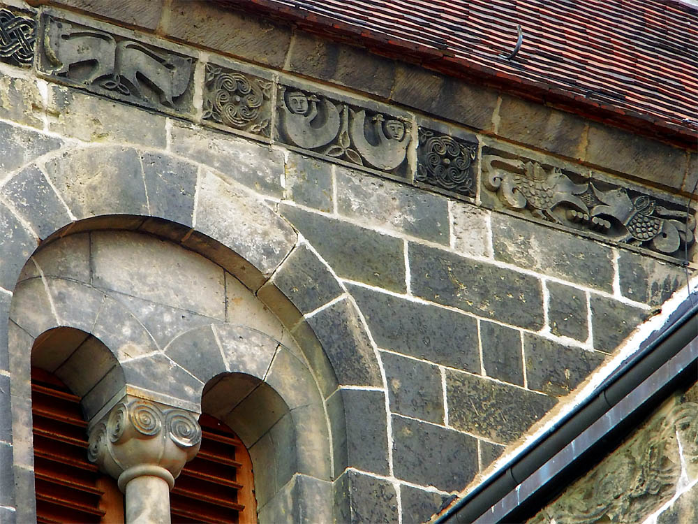 All diese Elemente, die geradlinigen Gesimse, die theils der Antike nah verwandten, theils aus eigner Unbehülflichkeit entstandenen Formen, die Abwesenheit aller Motive, welche die mittelalterliche Kunst speciell charakterisiren, sodann die kindliche Rohheit der Gesammt-Ausführung, deuten auf eine sehr frühe Erbauungszeit zurück und machen es sehr wahrscheinlich, daß wir in dieser kleinen Gruftkirche in der That einen Ueberrest aus der frühesten Zeit christlicher Kunstübung in den sächsischen Landen besitzen.