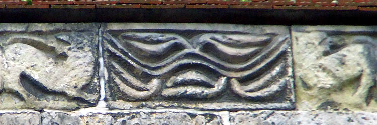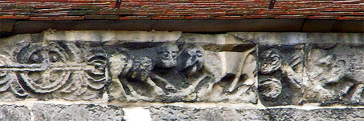 Nach der Auffindung 1540 am Kopfende auf dem Inschriftstreifen die Namen Ram und Gosa eingegraben. Von der alten sehr verriebenen Inschrift noch zu lesen: