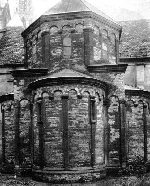 Höchst beachtenswerth ist gewiss ein Grundriss, der durch die vielfachen und regelmässig angeordneten halbkreisförmigen Nischen (die man jedoch wegen ihres nur geringen Durchmessers von nur 6--7 Fuss nicht wohl mit Waagen als ehemalige Kapellen anerkennen kann), allerdings an römische Bauanlagen erinnert; beachtenswerth ist auch eine gewisse schlanke Magerkeit aller Verhältnisse, so wie die sorgfältige Behandlung der Details; Alles Eigenthümlichkeiten, die wohl den Anspruch auf hohe Alterthümlichkeit zu begründen geeignet sind. Wenn man aber weiter fragt, welchem Jahrhunderte dieselben speciell eigenthümlich sein möchten, so ist die Antwort darauf nicht so leicht zu geben. Aehnliche Eigenthümlichkeiten charakterisiren allerdings die Bauwerke des XI. Jahrhunderts; vieles davon lässt sich aber auch an den wenigen Monumenten erkennen, denen wir mit Sicherheit oder doch mit Wahrscheinlichkeit ein noch höheres Alter zuschreiben können. Aber ganz bestimmte Indicien, welche z. B. in Cöln und Umgegend zur Feststellung