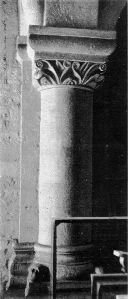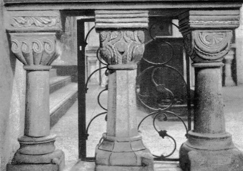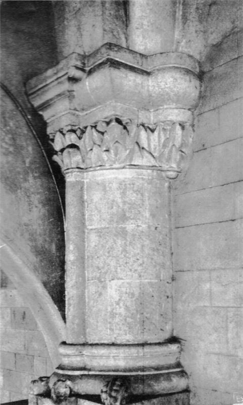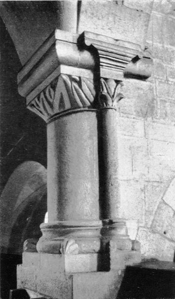 Dieselbe Profilirung, welche die Gesimse der Pilaster zeigen, sehen wir aber auch an den Abaken der Säulenknäufe des Altares im Innern der Capelle, und wir können sie daher mit denselben nur gleichzeitig erkennen, was auch oben bereits vorausgesetzt wurde. Der Charakter dieser Säulen entspricht überhaupt vollkommen dem des XII. Jahrhunderts 1).