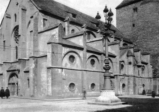 Wohl aber führt diesen Titel eine andere Kirche, welche an dem freien Platze, dicht vor der Fronte des Domes, noch gegenwärtig liegt. Allerdings zeigt dieselbe eine Form, die derjenigen eines Baptisteriums, wie wir uns ein solches nach italienischen Vorbildern denken, sehr wenig entspricht. Wir sehen jetzt ein modernes Kirchgebäude, von länglicher Grundform; aber auch das mittelalterliche Bauwerk, an dessen Stelle das jetzige erst in moderner Zeit trat, dürfte schwerlich der eigenthümlichen Form eines Baptisteriums viel besser entsprochen haben. Bereits Bischof Conrad I. (1126-1132) gründete ein Collegiatstift bei S. Johannes Baptista, dessen Kirche bei dem grossen Brande von 1152 mit zerstört wurde. Die wiedererbaute