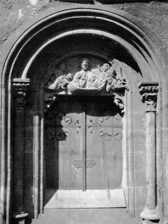 Dass die Absicht nicht bestanden hat Bogen oder Gewölbe gegen den übrigen Teil des Portals und seine seitlichen Fortsetzungen zu spannen, geht aus einem Blick auf das ganze Portal hervor. Punkte, an welche sich Bogen oder Gewölbe hätten anlehnen können, sind weder vorhanden noch zu finden.