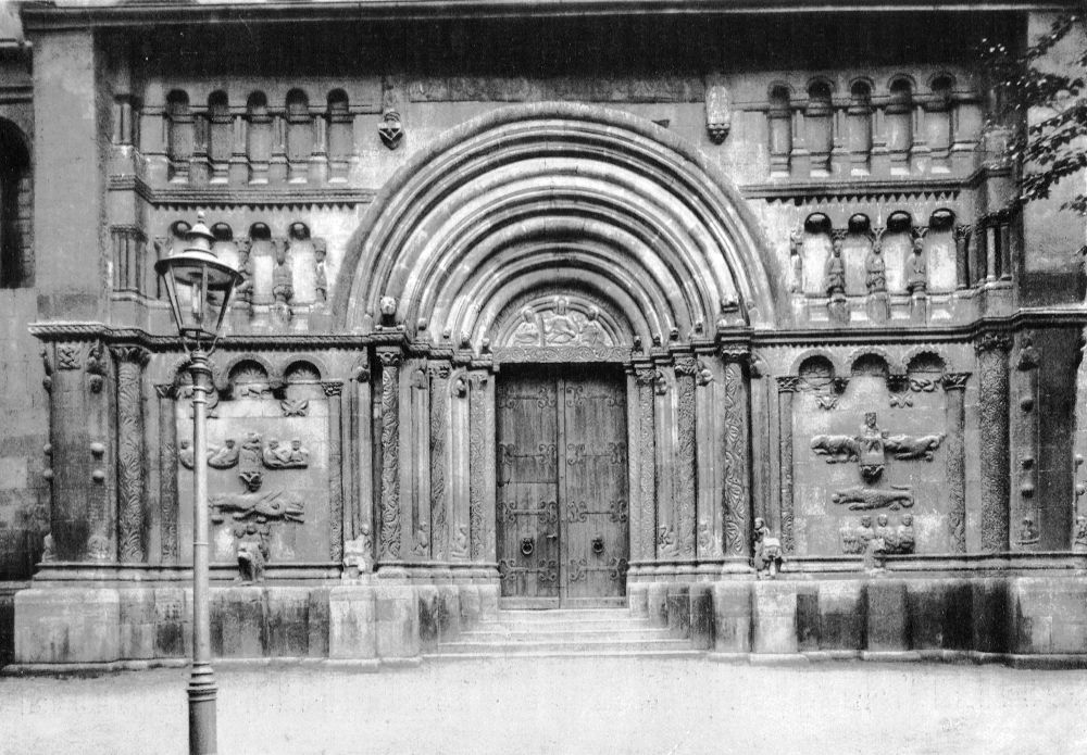 Aber man hatte diese vier Löwen, die mit dem Unterbleiben des Baues der Vorhalle ihrem Zweck nicht dienen konnten und griff, um diese wertvollen Plastiken zu verwerten, zu dem Mittel sie nachträglich in das Portal einzufügen.
