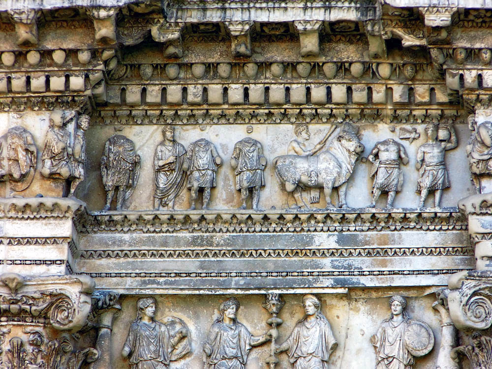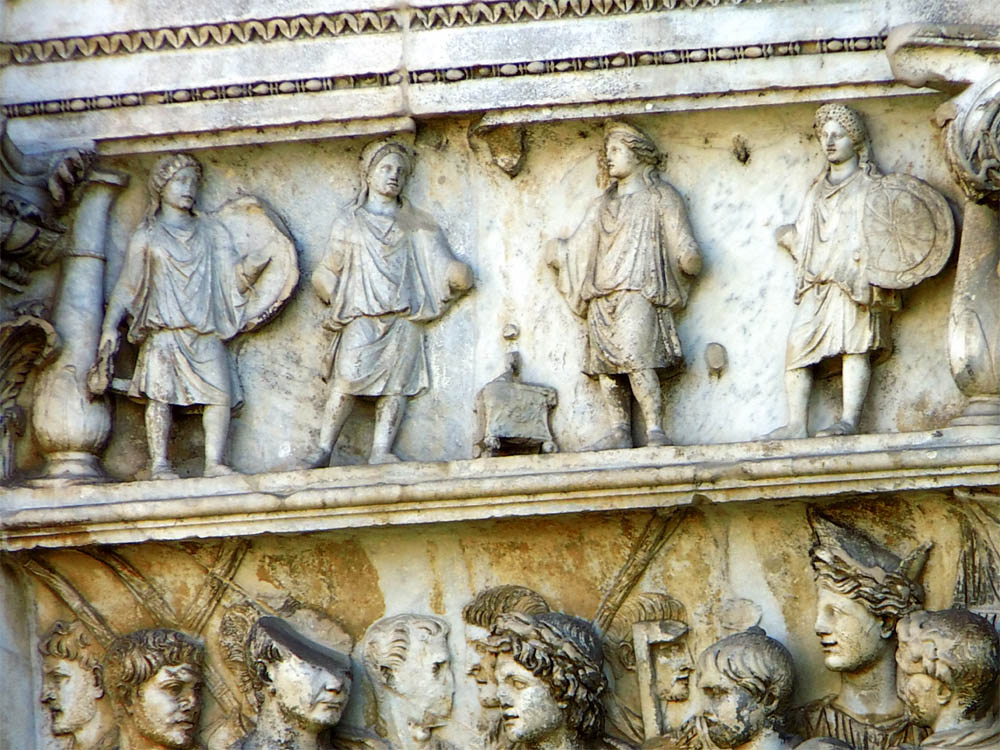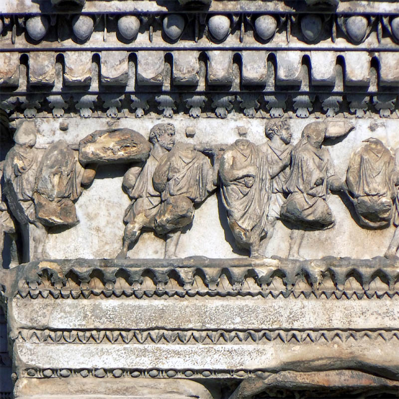 Ein räumlich begrenztes aber kostbares Beispiel für diese Verfahren, in denen sich das Nützliche mit dem Schönen verbindet, ist das Bewässerungssystem im Garten der Minerva.