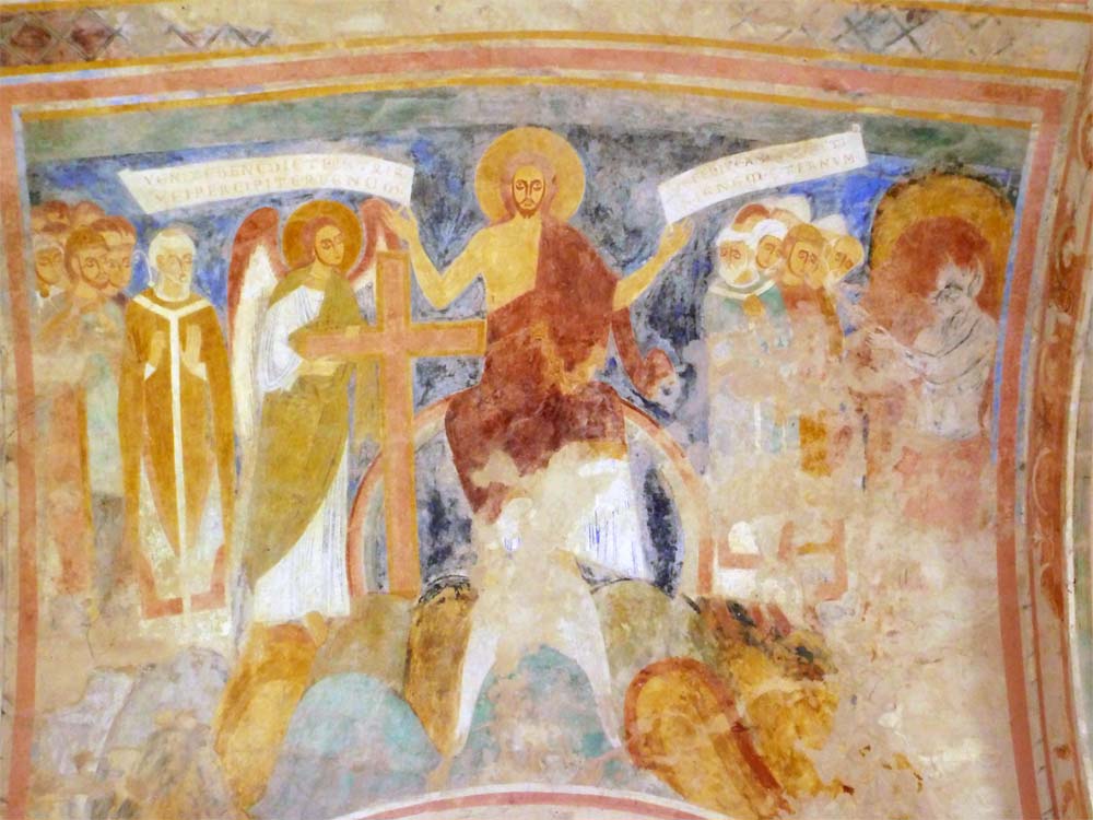 Von einer Gesamtbeschreibung des Bestandes kann hier um so eher Abstand genommen werden, als die noch ausstehenden Freilegungen der Malereien des Langhauses erst einen vollen Überblick und die Möglichkeit des Verständnisses des Programmes bieten werden. Da bis dahin aber noch Jahr und Tag vergehen können, seien die jetzt sehr wohl schon erörterbaren kunstgeschichtlichen Probleme wenigstens angeschnitten.