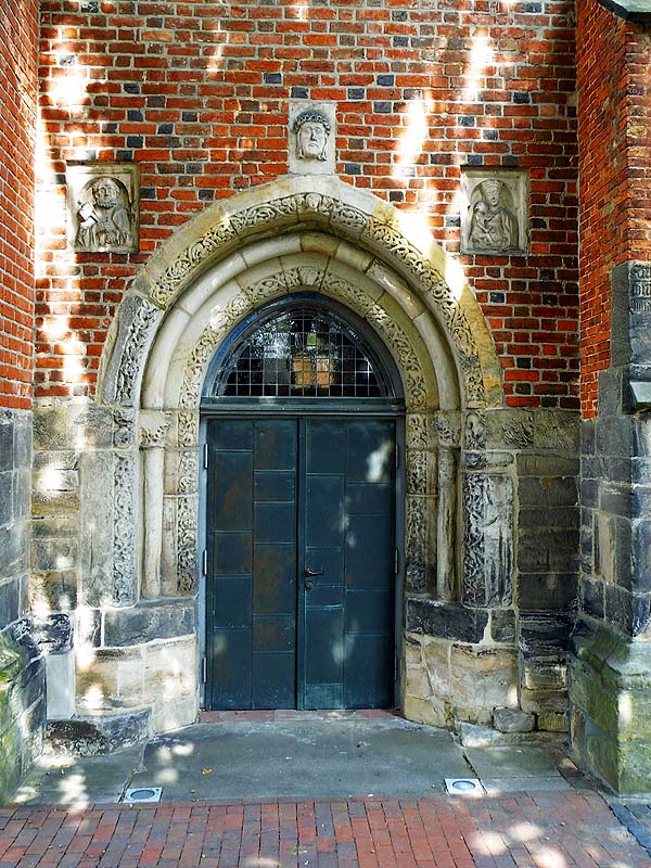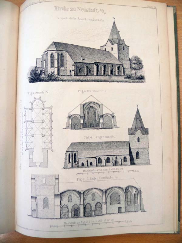 Eingang des Gothischen an. Ob die Portale bei dem um 1500 stattgefundenen Umbau an ihrer ursprünglichen Stelle stehen geblieben, oder von derselben versetzt sind, läßt sich nicht angeben. — Nach der Constructionsweise und allen dem alten Bau zugehörigen Details glauben wir dessen Bauzeit etwa um die Mitte des 13. Jahrhunderts annehmen zu dürfen. — So viel über den alten Bau, wobei wir schließlich noch hervorheben, daß derselbe ein Quaderbau war, was insofern nicht ohne Interesse sein dürfte, als etwa eine Stunde nördlich von Neustadt (in der Richtung nach Verden zu) etwa gleichzeitig im Kloster Mariensee eine Kirche in Ziegeln erbaut wurde, abermals ein Stündchen weiter von dortaus nach Verden in Mandelsloh schon im 12. Jahrhundert eine Pfeilerbasilike in Ziegeln aufgeführt war. Es bildet hier also Neustadt im 13. Jahrhundert die Grenze, über welche hinaus in Niedersachsen der von Norden und Osten eingekehrte Backsteinbau nicht gedrungen ist. Trotz der Nähe sandsteinreichen Gebirge sehen wir indeß um‘s Jahr 1500 die Restauration der Kirche in Neustadt ganz und gar in Ziegeln hergestellt, aus welchem Umstande zu schließen ist, daß im Verlaufe der Jahrhunderte