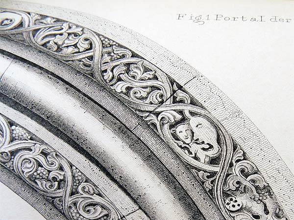 Sämmtliche Säulenbasen sind nach dem Motive der attischen Basis gebildet, aber sie zeigen nicht das Starre und gefühllos Copirte, welches sich häufig an Profilen und namentlich den attischen Basen aus der Frühzeit romanischen Styles findet, sondern sind schwunghaft elastisch und mit jener Feinheit und Eleganz profilirt, die der Blüthezeit der romanischen Kunst angehörend, an griechische Profilirung erinnert und das