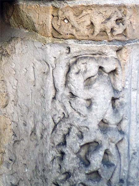 Der starke Kalküberzug des Pfeilers hinderte uns leider am genaueren Erkennen und bestimmteren Darstellen ebengenannten Ornamentes.