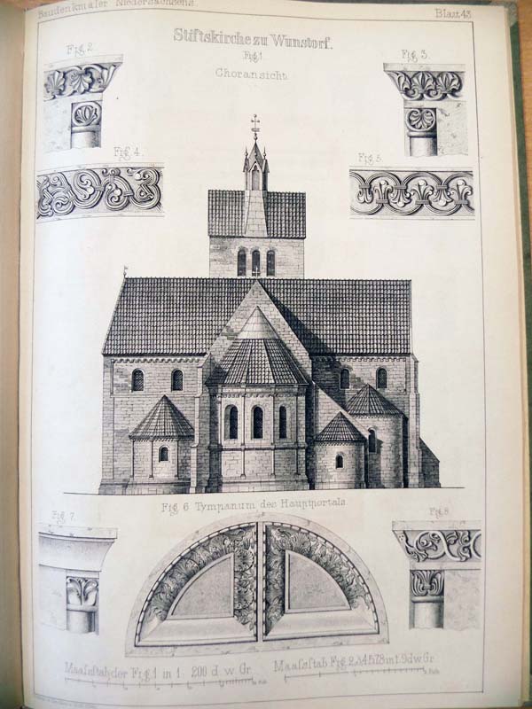 Quelle: Uebersicht der mittelalterlichen Baudenkmäler Niedersachsens. Bd. 3 Sp. 165-170. Bl. 41-44. Hannover, Schmorl & Seefeld 1883