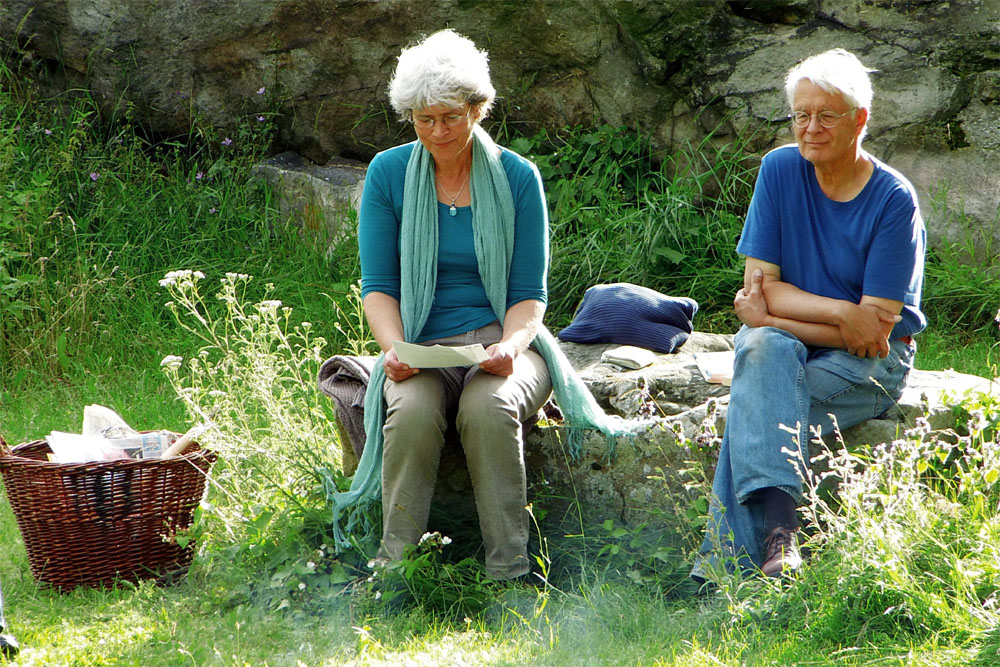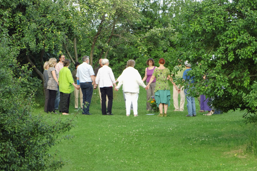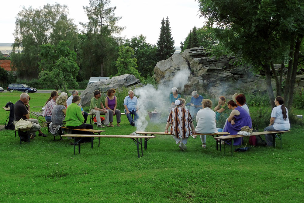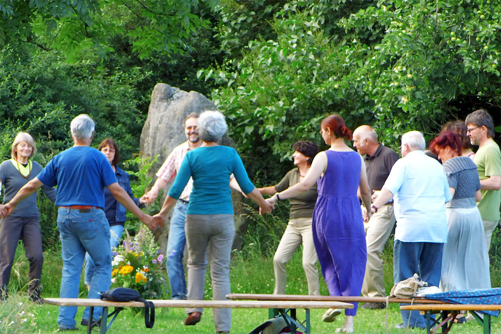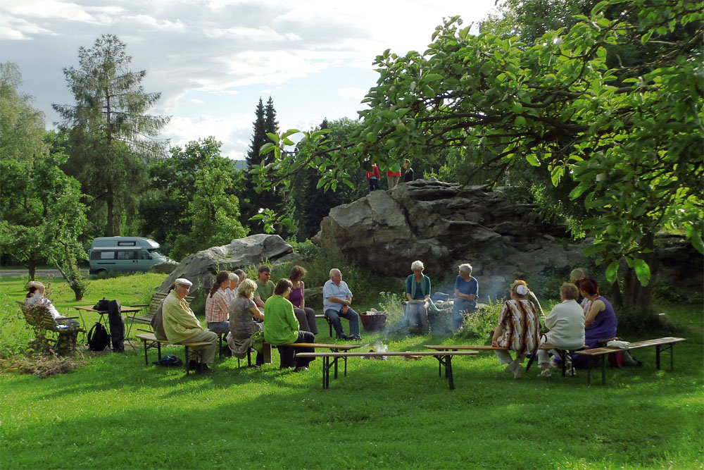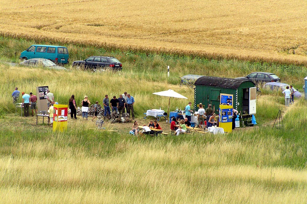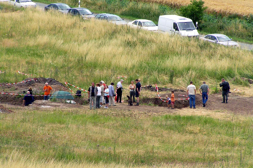 Sammlergruppen am Rande einer ehemaligen Bachniederung. Die
