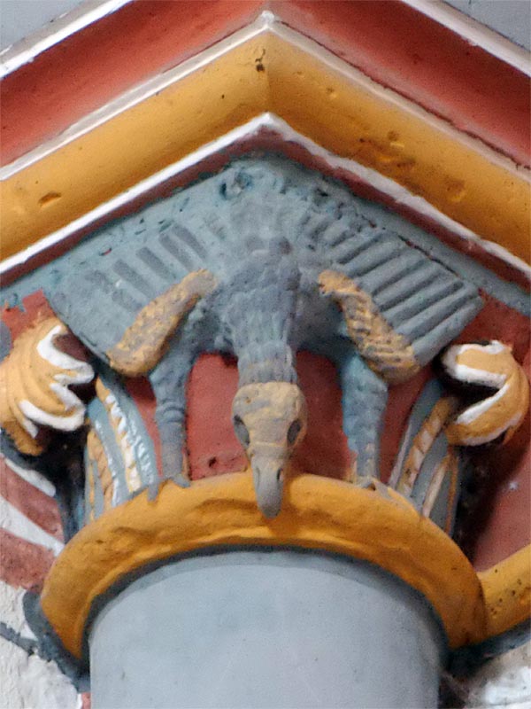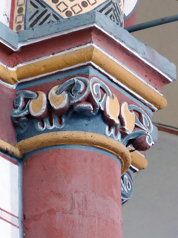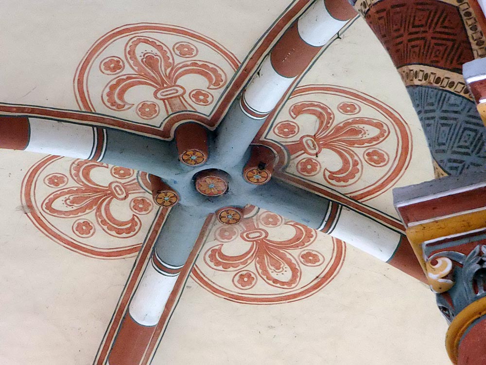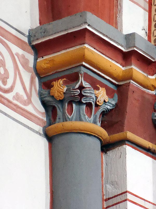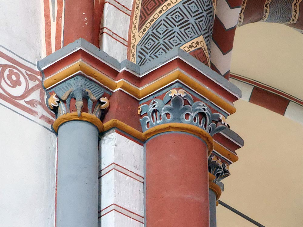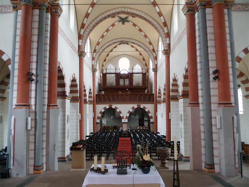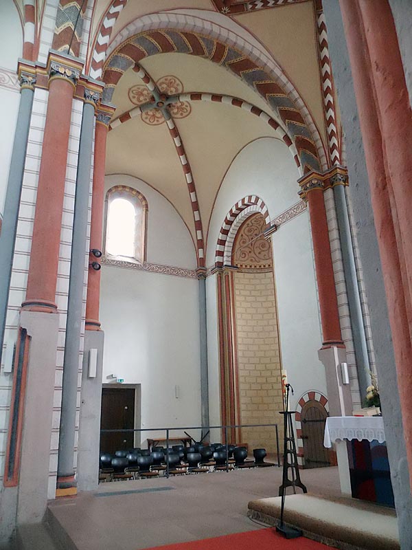 Ein Rekonstruktionsversuch des Westwerks durch K. Hecht zeigt eine zweitürmige Anlage, die als Querriegel im Westen vorgelagert war. Im Inneren befand sich eine zum Kirchenschiff geöffnete Herrscherempore, in der der König und spätere Kaiser auf die ihm zustehende Weise am Gottesdienst teilnehmen konnte.