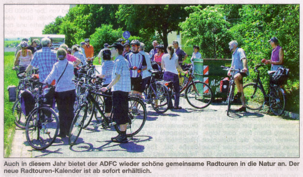 Der neue „Radtouren-Kalender“ des ADFC ist ab sofort erhältlich im „Zentrum für Umwelt und Mobilität“ (Z/U/M/) am Stadtmarkt 11 sowie auf den lntemet-Seiten des ADFC unter www.adfc-wf.de.